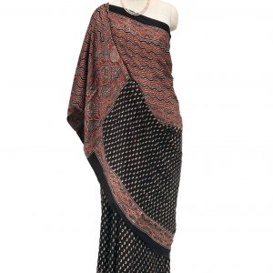 Ajrakh block printing model saree