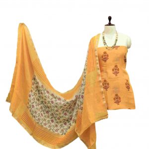 3 Pc Linen block print suit material set RS