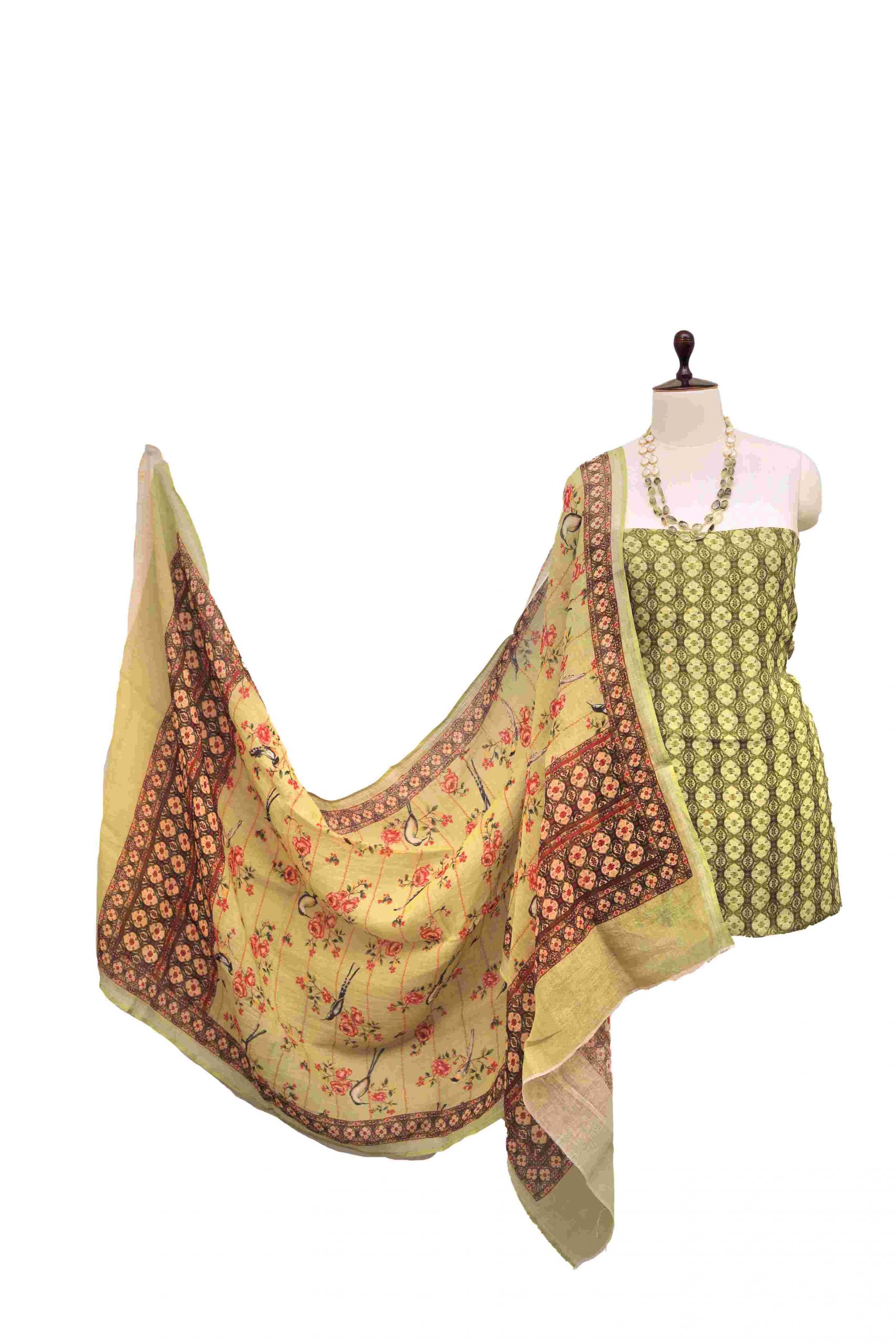 2 Pc Linen block print suit material set
